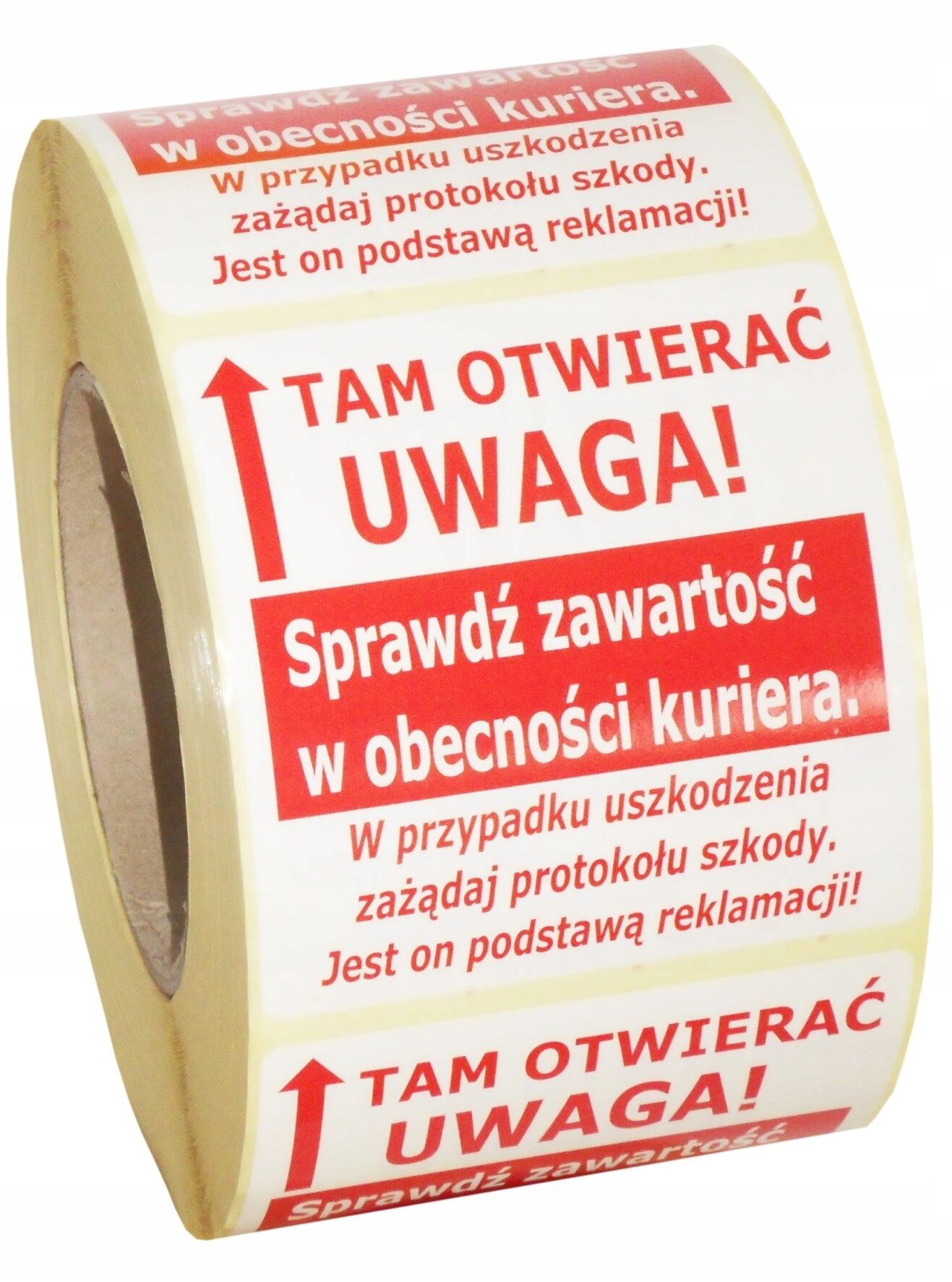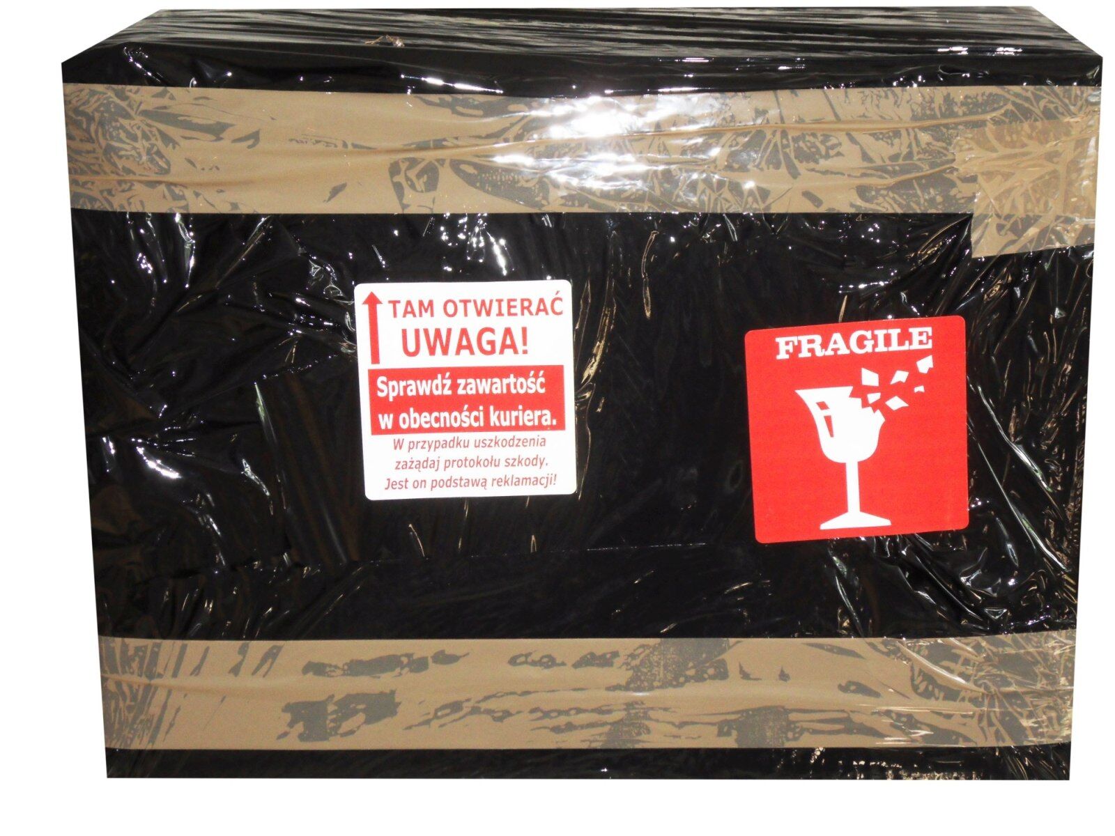 Naklejki zaprojektowane z wyraźnym czerwonym napisem na kontrastującym tle przyciągają uwagę pracowników firm kurierskich i magazynów, co minimalizuje ryzyko niewłaściwego obchodzenia się z paczką.