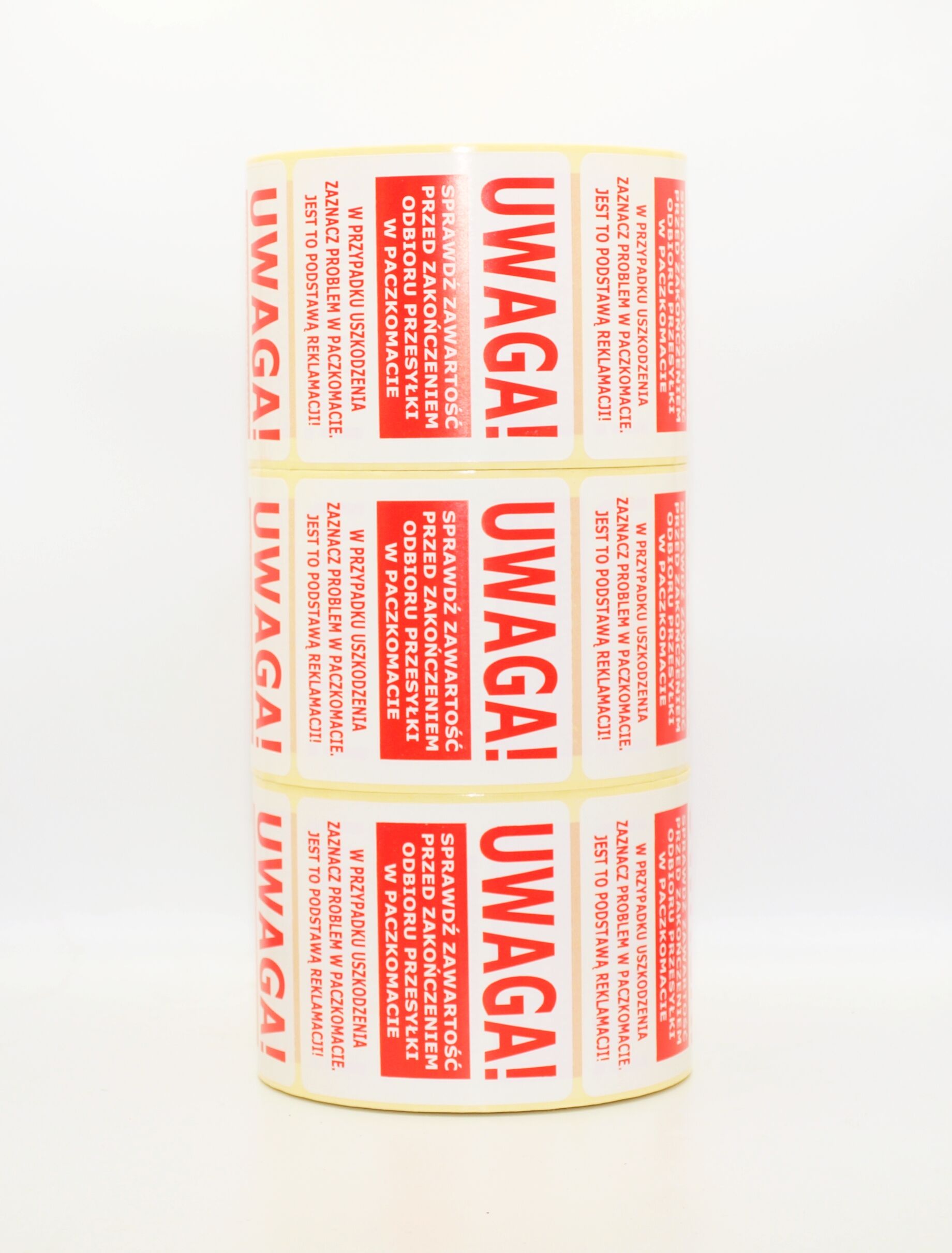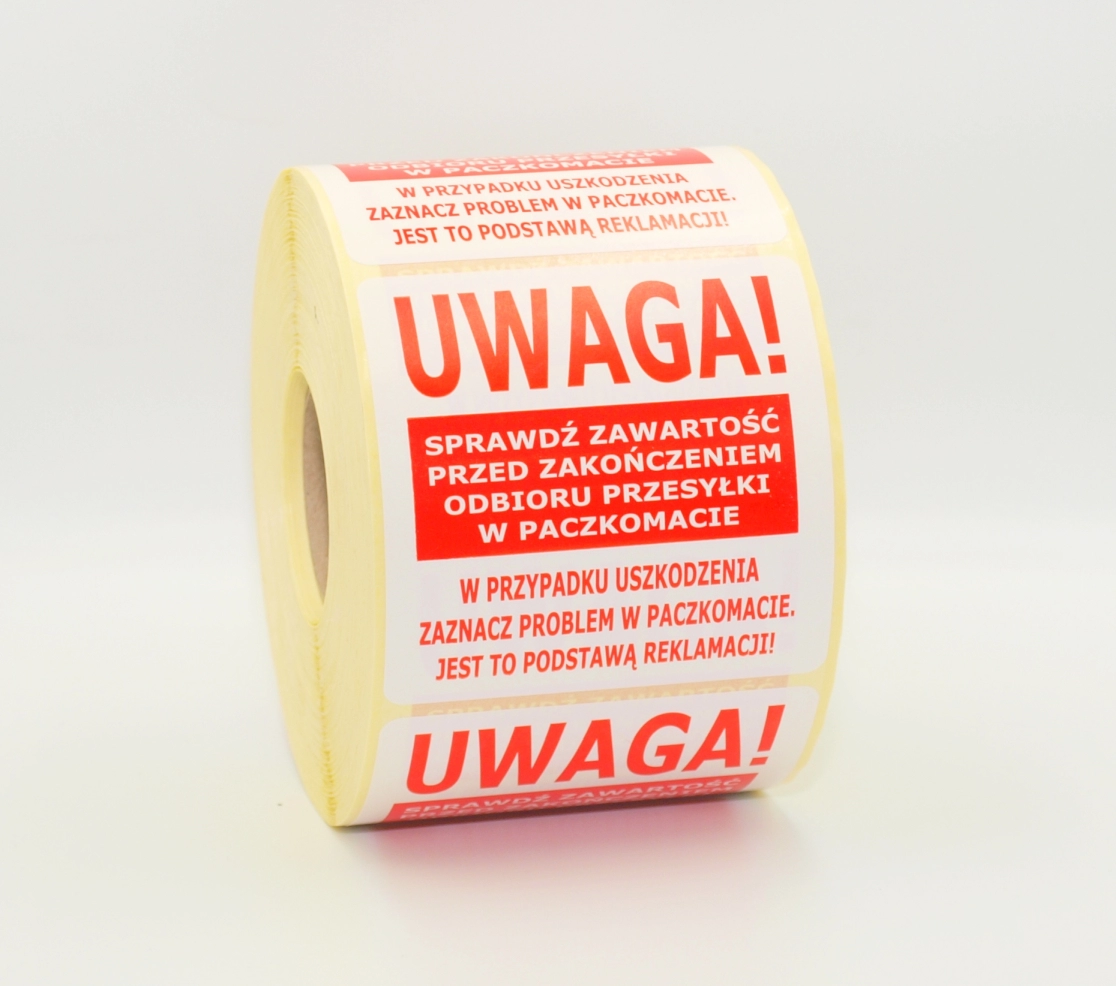 SKOŃCZ Z ROBIENIEM RZECZY KTÓRE SZKODZĄ TWOJEJ FIRMIE!Kolejne reklamacje przy przesyłkach PACZKOMATOWYCH? Znowu nie potrzebne dyskusje, telefony od zdenerwowanych klientów, wydane pieniądze na zwroty i dodatkowe przesyłki.Jak temu zaradzić?Poinformuj odbiorcę aby sprawdził przesyłkę przed zakończeniem procesu odbioru przesyłki w PACZKOMACIE poprzez umieszczenie etykiety, naklejki informacyjnej.Zapewnij sobie spokój, koszt jednej etykiety tylko 0,042 PLN (cztery grosze).