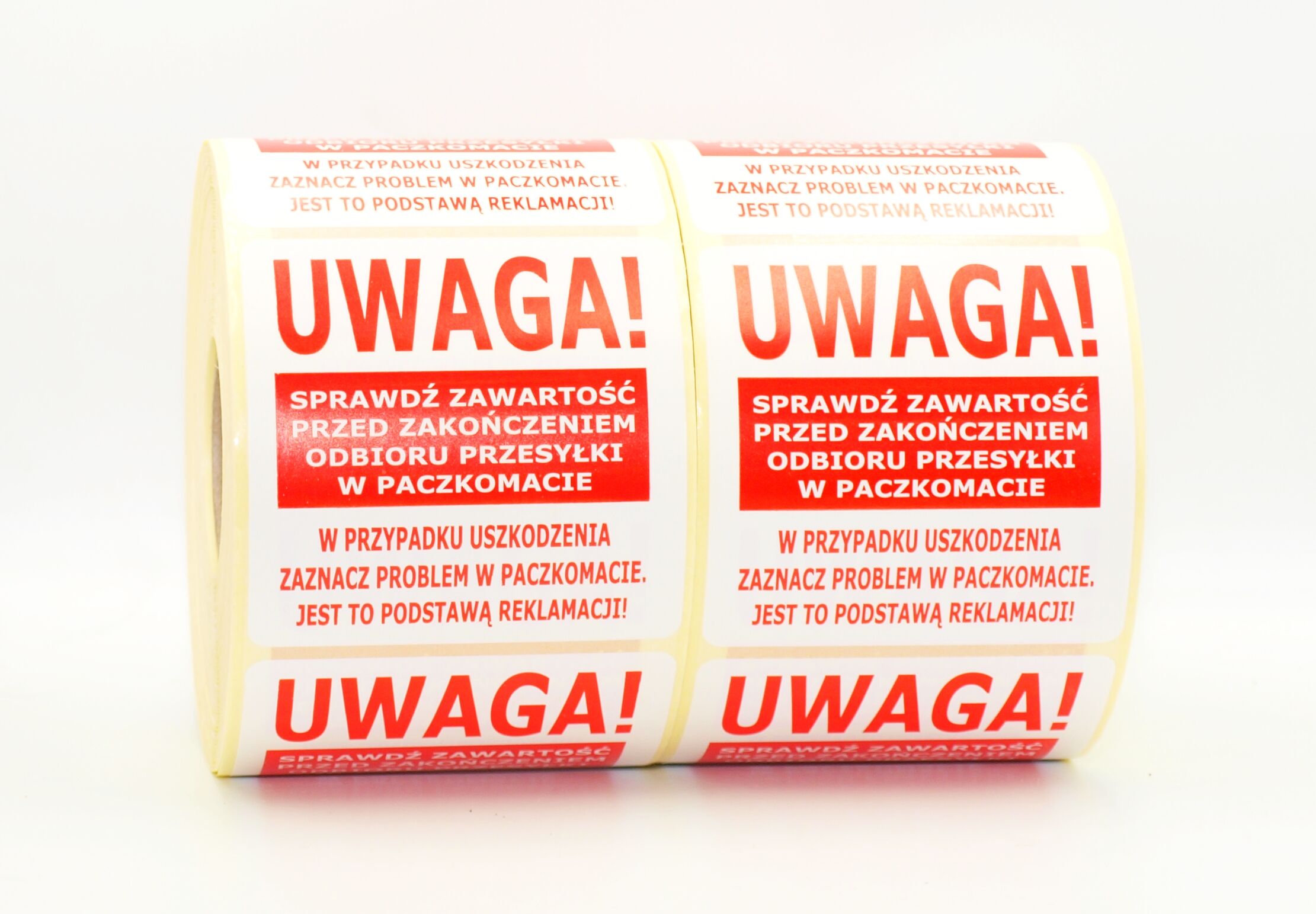 Etykiety Naklejki Nalepki SPRAWDŹ ZAWARTOŚĆ PRZY PACZKOMACIE! 10.000