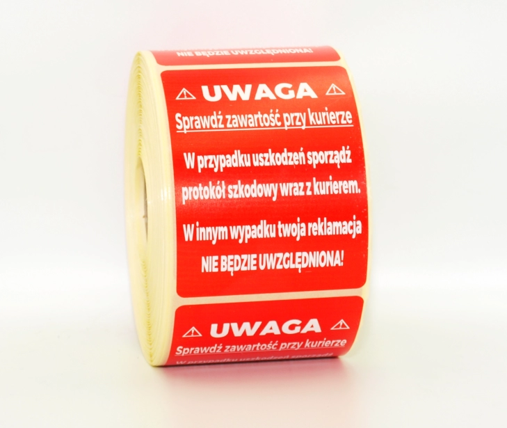 Naklejki SPRAWDŹ ZAWARTOŚĆ UWAGA 10.000 szt.